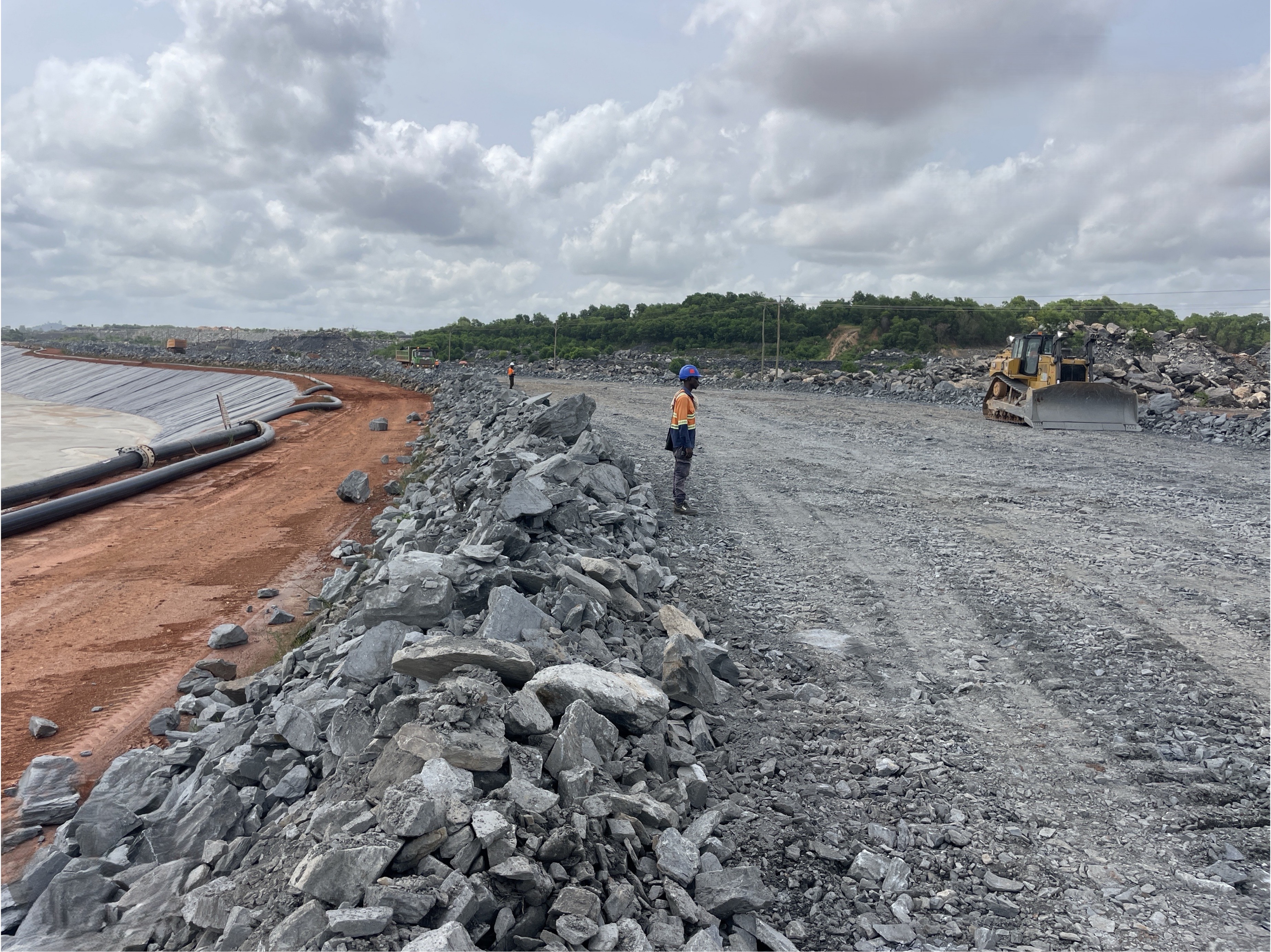 Tailings dam Construction supervision of an embankment raise , rock buttress, decant Causeway, Rock ring raise and HDPE liner installation